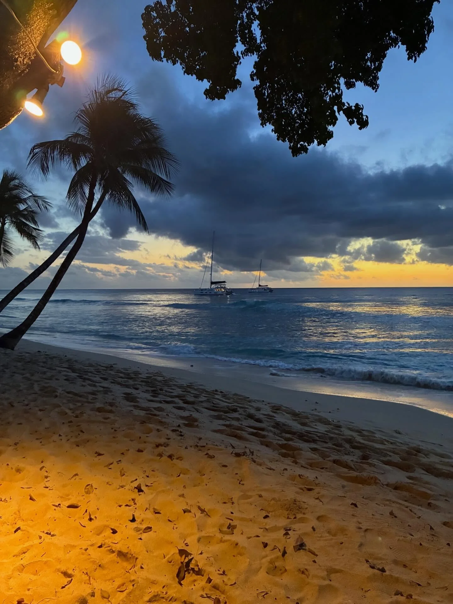 Night view of a historic hotel with ornate architecture, illuminated with lights, sitting on a hill near a body of water that reflects the building's lights. The sky is dark and cloudy, and there are some trees and modern buildings nearby.